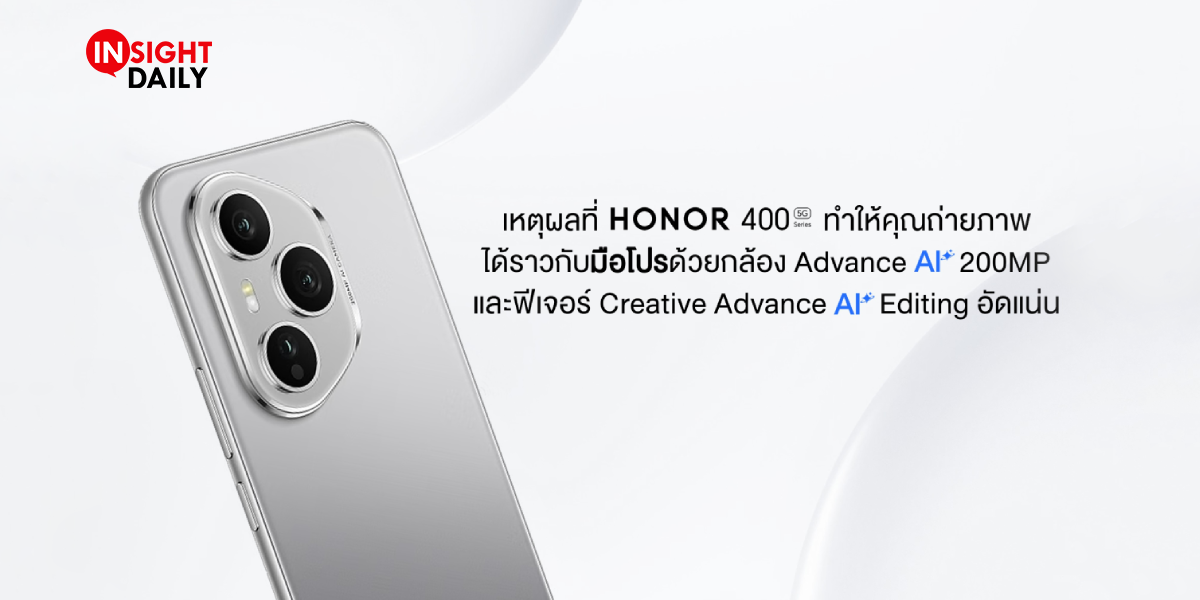 พาส่องเหตุผลที่สมาร์ตโฟน HONOR 400 Series จะทำให้คุณถ่ายภาพได้ราวกับมือโปร! ด้วยประสิทธิภาพกล้อง Ultra-clear Advance AI 200MP และฟีเจอร์ Creative Advance AI Editing ที่อัดแน่น