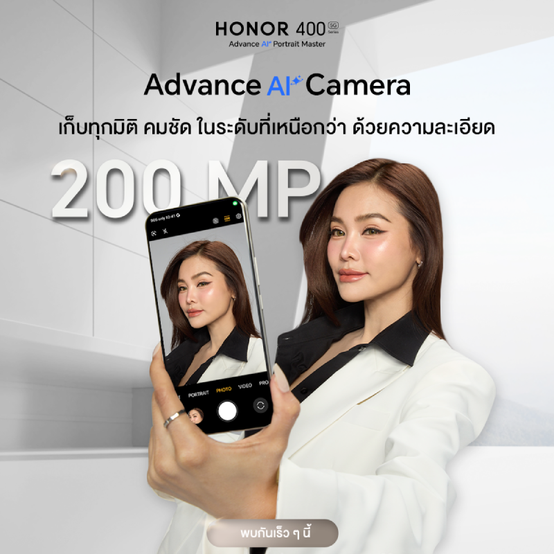 ออเนอร์ (HONOR) ผู้ให้บริการอุปกรณ์อัจฉริยะชั้นนำระดับโลก เตรียมเปิดตัว HONOR 400 Series อย่างเป็นทางการในประเทศไทย ภายใต้คอนเซปต์ “Advance AI Portrait Master” สมาร์ตโฟนเรือธงระดับเริ่มต้นที่ผสานเทคโนโลยีล้ำสมัยเข้ากับดีไซน์พรีเมียม โดดเด่นด้วยกล้องถ่ายภาพเหนือชั้น 200MP Ultra-clear Advance AI และ Creative Advance AI Editing ที่ให้มามากกว่า 40 ตัว พร้อมฟีเจอร์สุดล้ำอย่าง AI Image to VDO ที่สามารถเปลี่ยนภาพนิ่งให้กลายเป็นวิดีโอเจ้าแรกของโลก ช่วยเพิ่มความสนุกในการการถ่ายภาพ สร้างสรรค์คอนเทนต์ และเติมเต็มจินตนาการได้อย่างไร้ขีดจำกัด