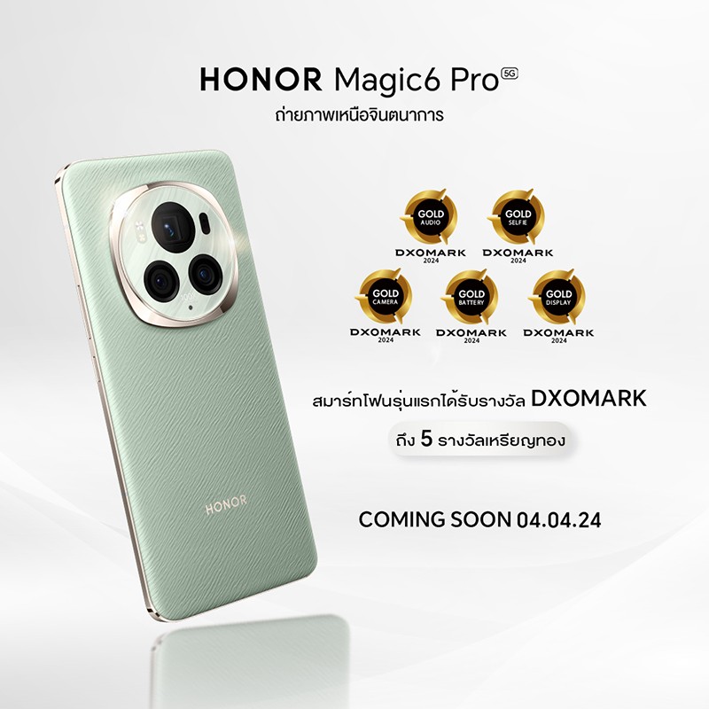 HONOR Magic 6 Pro สุดยอดสมาร์ตโฟน 5 เหรียญทองการันตีโดย DXOMark เตรียมเปิดตัว 4 เม.ย. นี้!