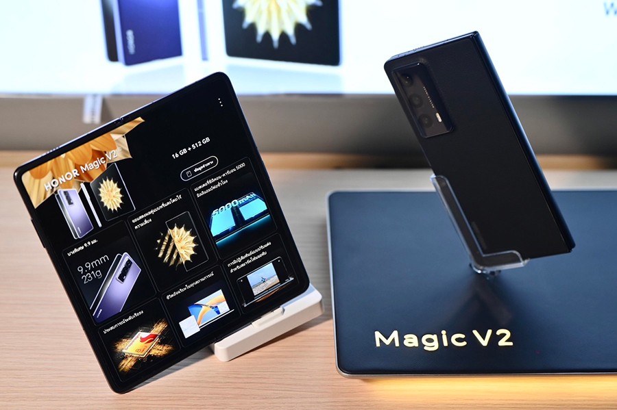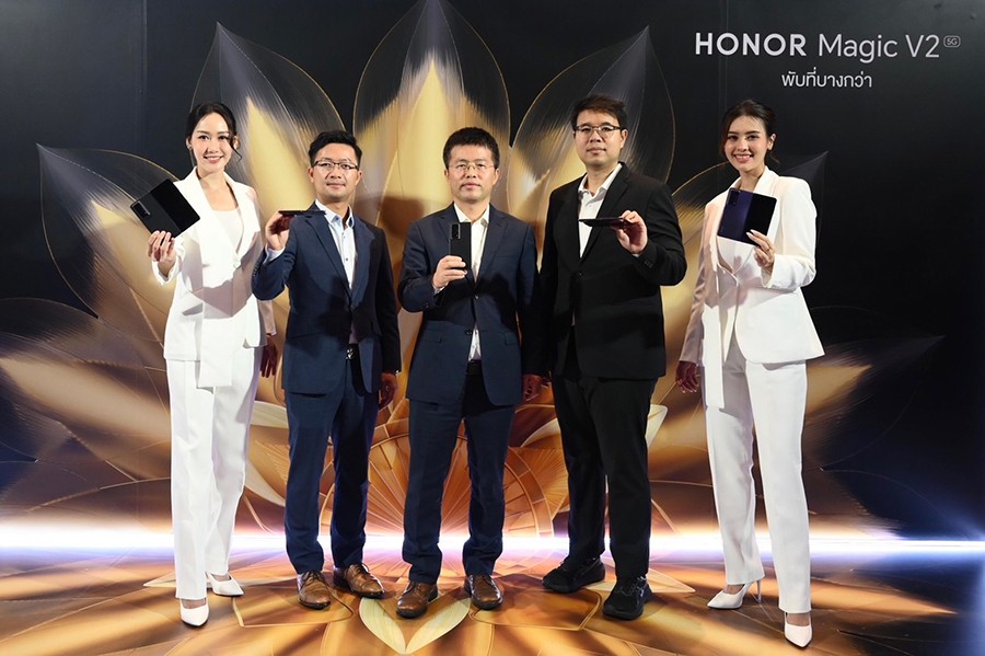 นายไมเคิล จิง ผู้อำนวยการ HONOR ประเทศไทย กล่าวว่า “เป้าหมายของ HONOR คือ การเป็นแบรนด์ที่มอบสิ่งที่ดีที่สุดในตลาด ซึ่งรวมถึงนวัตกรรม เทคโนโลยี การบริการ และการมอบประสบการณ์ที่มีความหมายและไม่เหมือนใครให้แก่ผู้บริโภค ซึ่งจากการศึกษาพฤติกรรมของผู้บริโภคภายใต้แนวคิด Humen-Centric และเทรนด์การใช้งานสมาร์ตโฟนที่เปลี่ยนแปลงไปในช่วงครึ่งทศวรรษที่ผ่านมา ทำให้ HONOR พัฒนาผลิตภัณฑ์ใหม่ๆ อยู่เสมอ เพื่อให้ได้ประสิทธิภาพด้านการใช้งานที่ดีที่สุดในทุกๆ ด้าน โดยล่าสุดได้บุกตลาดสมาร์ตโฟนหน้าจอพับได้ ผ่านการเปิดตัว HONOR Magic V2 ซึ่งถือเป็นจุดเริ่มต้นของการแข่งขันในสมาร์ตโฟนเซกเมนต์นี้ ด้วยการนำเสนอจุดแข็งเป็นสมาร์ตโฟนจอพับที่บางที่สุดและมีน้ำหนักเบาน้อยกว่าสมาร์ตโฟนบางรุ่นในตลาด รวมถึงแบตเตอรี่คู่ใหญ่ 5000mAh ที่บางที่สุดเพียง 2.72 มิลลิเมตร แต่ให้ความจุเยอะที่สุดในบรรดาสมาร์ตโฟนจอพับรุ่นอื่นๆ ผสานกับหน้าจอขนาดใหญ่ 7.92 นิ้ว ที่มาพร้อมเทคโนโลยีลดแสงที่ช่วยลดอาการปวดตา ให้ความสบายในการรับชมแม้ใช้งานเป็นระยะเวลานาน และในวันนี้เราพร้อมแล้วที่จะนำผลลัพธ์จากความมุ่งมั่นจากการพัฒนาอย่างต่อเนื่องมาแนะนำกับผู้บริโภคชาวไทยทุกคนได้รู้จัก พร้อมสร้างปรากฏการณ์ใหม่ ๆ ให้กับวงการสมาร์ตโฟนในปีนี้”