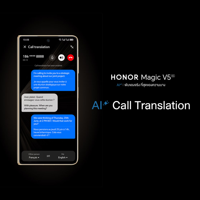 โลกการทำงานและการสื่อสารกำลังเปลี่ยนไปอย่างรวดเร็ว HONOR Magic V5 มาพร้อม Advance AI ผู้ช่วยอัจฉริยะ ที่ทำให้ทุกการสื่อสาร การแปลภาษา และการจัดการข้อมูลเป็นเรื่องง่าย และทันสมัยยิ่งขึ้น