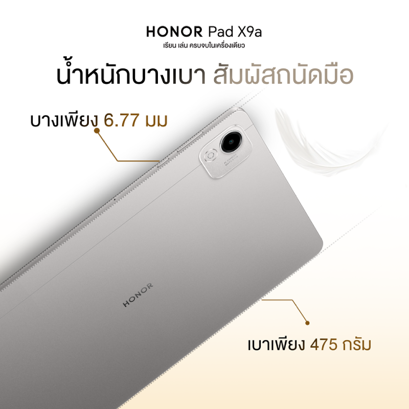 ในยุคที่การทำงานและความบันเทิงต้องการความคล่องตัวสูง HONOR Pad X9a ได้เปิดมิติใหม่ของแท็บเล็ตพรีเมียม ที่มอบประสบการณ์เทียบเท่าการใช้งานพีซี แต่พกพาง่ายและใช้งานได้สะดวกกว่า ด้วยจอขนาดใหญ่ 11.5 นิ้ว ความละเอียดระดับ 2.5K รองรับการทำงานร่วมกับปากกาอัจฉริยะ HONOR Choice Pencil ที่มีความแม่นยำสูง เหมาะกับทั้งการทำงาน การเรียน และความบันเทิง รองรับการใช้งานทุกรูปแบบตั้งแต่การดูซีรีส์ ฟังเพลง ไปจนถึงการจดบันทึก วาดภาพ หรือแม้แต่การใช้งานเอกสารที่ซับซ้อน รวมถึงการดีไซน์บางเฉียบ น้ำหนักเบา และให้แบตเตอรี่อึด ทำให้รองรับการใช้งานยาวนานตลอดวัน และวันนี้เราจะพาทุกคนมาทำความรู้จักกับแท็บเล็ตรุ่นนี้ให้มากขึ้น จะมีความน่าสนใจอะไรบ้าง มาดูกัน!