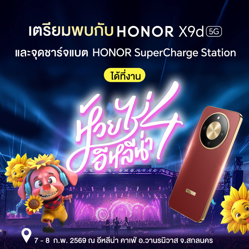 “ห้วยไร่ อีหลีน่า Festival ครั้งที่ 4” ชวนดื่มด่ำเทศกาลดนตรีและสัมผัสความแกร่งของ HONOR X9d 5G