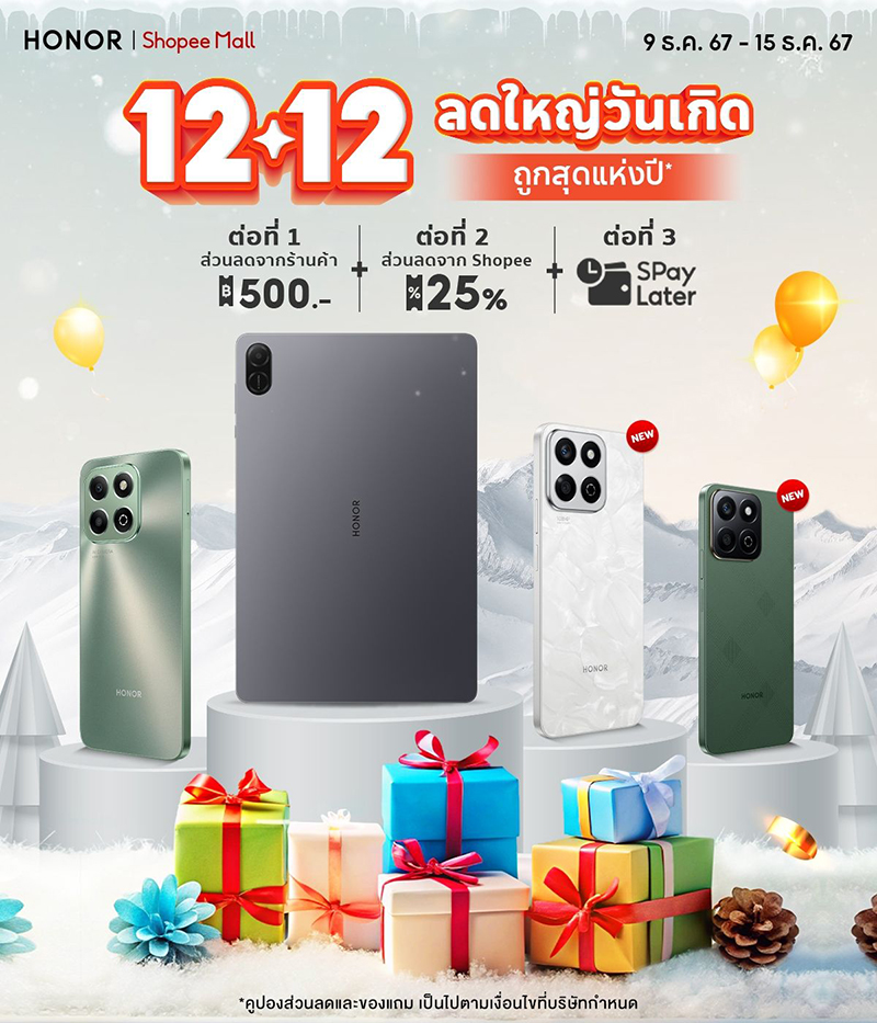 ถูกสุดแห่งปี! HONOR x Shopee 12.12 แจกดีลเด็ด ลดใหญ่จัดหนัก 11 – 15 ธ.ค. นี้ เท่านั้น!