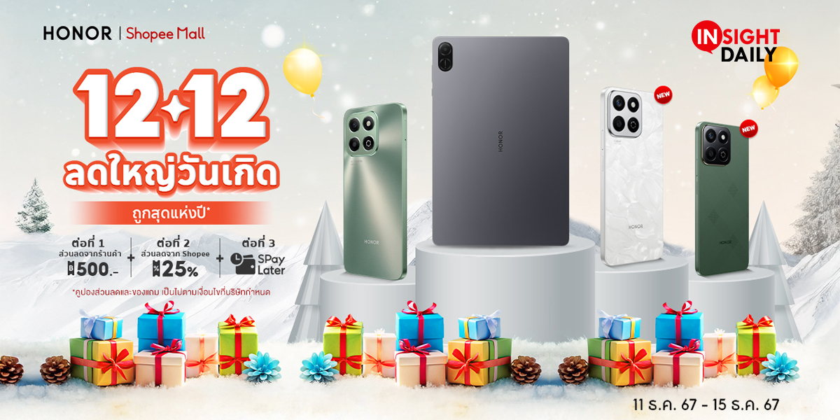 ถูกสุดแห่งปี! HONOR x Shopee 12.12 แจกดีลเด็ด ลดใหญ่จัดหนัก 11 – 15 ธ.ค. นี้ เท่านั้น!
