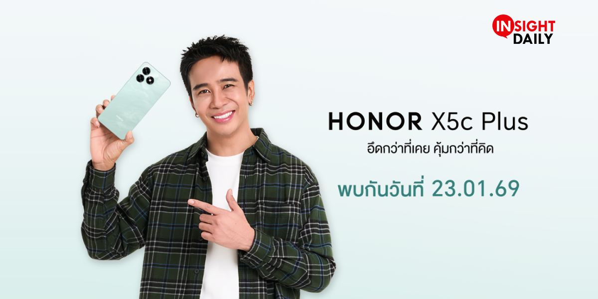 HONOR X5c Plus พร้อมเปิดตัวและวางจำหน่ายอย่างเป็นทางการในประเทศไทยตั้งแต่วันที่ 23 มกราคม 2569 เป็นต้นไป ในราคาที่เข้าถึงได้ พร้อมโปรโมชันสุดพิเศษและสิทธิประโยชน์มากมาย เพื่อมอบความคุ้มค่าสูงสุดให้แก่ผู้บริโภคที่มองหาสมาร์ตโฟนคุณภาพในงบประมาณที่คุ้มค่า
