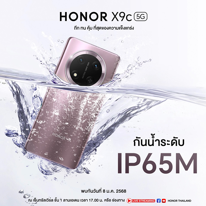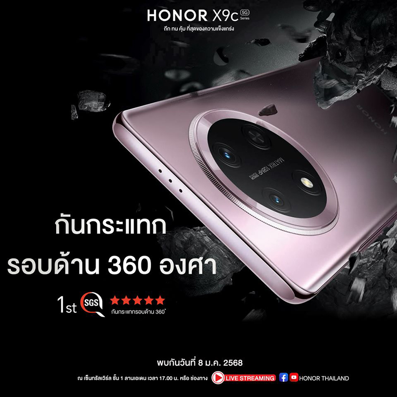 HONOR X9c 5G เตรียมเปิดตัวในประเทศไทยอย่างเป็นทางการ วันที่ 8 มกราคม 2568 มาพร้อมความพิเศษสุดกับการคว้า “ก้อง ห้วยไร่” ศิลปินลูกทุ่งอีสานขวัญใจคนไทยมาร่วมเป็น HONOR’s friend เพื่อสะท้อนภาพลักษณ์แบรนด์ที่มุ่งมั่นพัฒนาผลิตภัณฑ์คุณภาพที่พร้อมท้าชนและพิสูจน์ความแข็งแกร่งในทุกแง่มุม สามารถติดตามโปรโมชันและข้อเสนอพิเศษได้ในงานเปิดตัวพร้อมกัน วันพุธที่ 8 มกราคม 2568 เวลา 17.00 น. เป็นต้นไป ณ ชั้น 1 โซน Eden ศูนย์การค้าเซ็นทรัลเวิลด์ หรือรับชมบรรยากาศการเปิดตัวแบบสด ๆ ได้ทางเฟซบุ๊กเพจ HONOR Thailand และ YouTube HONOR Thailand