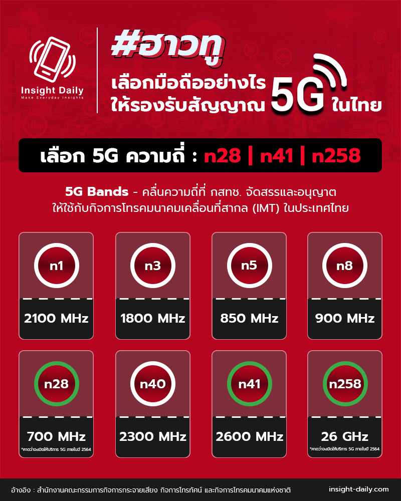 ปี 2564 เป็นปีที่เราเข้าสู่ยุค 5G ตอนต้นกันแบบเต็มตัวแล้วนะครับ ซึ่งนอกจากเรื่องของโปรโมชั่นแพ็กเกจ 5G ของแต่ละค่ายแล้ว คำถามที่หลายคนมักสงสัยตามมาก็คือ “แล้วเราจะมีวิธีเลือกซื้อมือถือ 5G อย่างไรบ้าง และมีวิธีดูอย่างไร?” มาครับ Insight Daily จะเล่าให้ฟัง