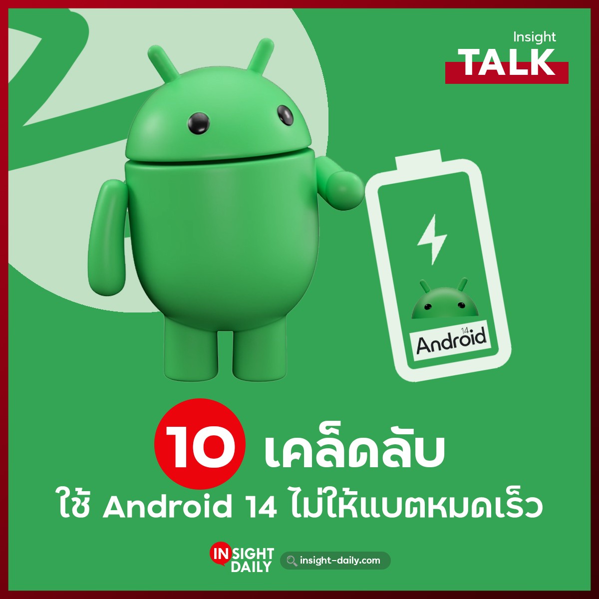 Android 14 คือระบบปฏิบัติการเวอร์ชันล่าสุดของทาง Google จึงได้รับการพัฒนาและเพิ่มฟีเจอร์สำหรับช่วยยืดระยะเวลาการใช้งานแบตเตอรี่ให้นานขึ้น ดังนั้นในครั้งนี้ทางทีมงาน Insight Daily มีเคล็ดลับมาแนะนำกันด้วย