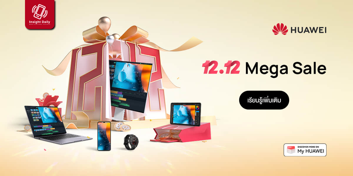 หัวเว่ย คอนซูมเมอร์ บิสสิเนส กรุ๊ป (ประเทศไทย) เปิดโปรจัดเต็ม 12.12 Mega Sale ลดสูงสุดกว่า 60% ส่งท้ายปีเสืออย่างยิ่งใหญ่ ครอบคลุมหลายกลุ่มผลิตภัณฑ์ให้ซื้อหาไปใช้งานส่งท้ายปี หรือจะเลือกไปเป็นของขวัญสายไฮเทคราคาคุ้มค่าให้คนที่เรารัก หรือจับฉลากส่งท้ายปลายปีก็เป็นตัวเลือกที่น่าสนใจไม่น้อย ไม่ว่าจะเป็นกลุ่มผลิตภัณฑ์แท็บเล็ต HUAWEI MatePad SE 10.4” รุ่น WiFi (4+64GB) รุ่นล่าสุด พร้อมโปรสุดพิเศษราคาเต็ม 6,999 บาท ลดแรงเหลือเพียง 4,XXX บาท วอร์มนิ้วเตรียมกดใน Shopee หรือ Lazada ก่อนใครได้เลย! สมาร์ทแบน HUAWEI Band 7 สมาร์ทวอทช์ HUAWEI WATCH GT 3 SE เปิดตัวใหม่ และ HUAWEI WATCH GT 2 รุ่น 46 มม. จอมอนิเตอร์ HUAWEI MateView GT 27″ ไปจนกระทั่งหูฟัง HUAWEI FreeBuds 4 และ HUAWEI FreeBuds Lipstick พร้อมให้ซื้อหาง่ายในหลากหลายช่องทางออนไลน์ของหัวเว่ย ทั้ง HUAWEI Store รวมถึงร้านค้าอย่างเป็นทางการบน Shopee และ Lazada ตั้งแต่วันที่ 6-15 ธันวาคม 2565