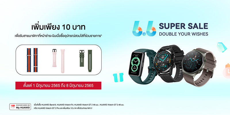 หัวเว่ย คอนซูมเมอร์ บิสสิเนส กรุ๊ป (ประเทศไทย) จัดมหกรรมแคมเปญชอปปิงออนไลน์สุดยิ่งใหญ่ต้อนรับกลางปี ส่งดีลปัง HUAWEI 6.6 Sales ยกทัพสมาร์ทดีไวซ์สุดล้ำหลากหลายกลุ่มผลิตภัณฑ์ไม่ว่าจะเป็นแท็บเล็ต สมาร์ทวอทช์ และจอมอนิเตอร์ มาให้เลือกจับจองเป็นเจ้าของในราคาลดพิเศษสูงสุดถึง 40% พร้อมยกกำลังความคุ้มค่า แค่จ่ายเพิ่มเพียง 10 บาท รับสายนาฬิกาเพิ่มไปเลย เมื่อซื้อสมาร์ทวอทช์รุ่นที่ร่วมรายการ จำกัดเวลาร่วมโปรเด็ดโดนใจแบบไม่กลัวฝนตั้งแต่วันที่ 1 – 8 มิถุนายน 2565 เมื่อซื้อสินค้าผ่านช่องทาง HUAWEI Store และร้านค้าอย่างเป็นทางการของหัวเว่ยบนแอปพลิเคชัน Lazada และ Shopee เท่านั้น