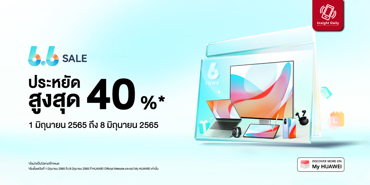 ดีลเด็ดสู้ฝน HUAWEI 6.6 Sales จัดเต็มส่วนลดสินค้าไอทีสูงสุด 40% พร้อมเสิร์ฟถึงบ้านผ่านช่องทางออนไลน์