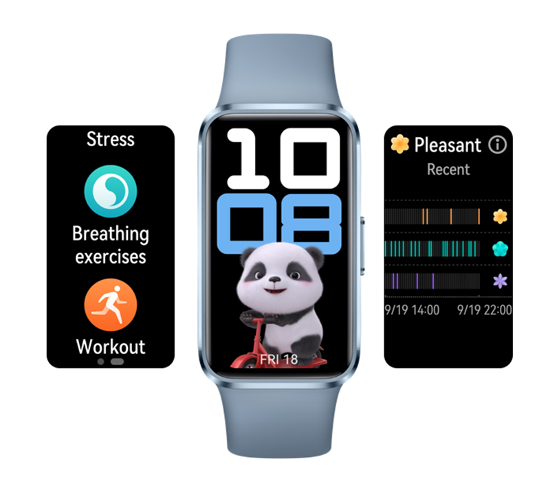 นอกจากนี้ ฟีเจอร์ดูแลสุขภาพยังรวมถึง หน้าปัดนาฬิกาธีมสัตว์เลี้ยงแพนด้า ที่แสดงอารมณ์ของผู้ใช้แบบเรียลไทม์ พร้อมทั้งสามารถปรับแต่งแอปให้เหมาะกับความต้องการของแต่ละคน Emotional Wellbeing Assistant ไม่เพียงแค่ติดตามอารมณ์ แต่ยังช่วยจัดการความเครียดด้วย การแจ้งเตือนเฉพาะบุคคลและการฝึกหายใจ เพื่อช่วยให้ผู้ใช้รับมือกับความเครียดได้ดีขึ้น และเพิ่มความสามารถในการฟื้นตัวทางอารมณ์