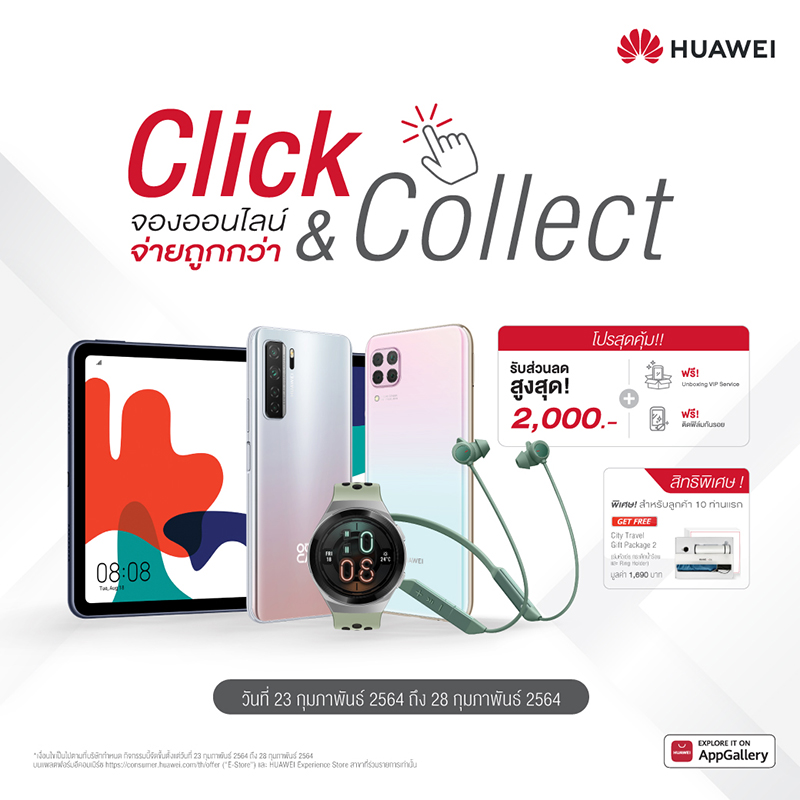 ครั้งแรกของหัวเว่ยกับบริการ Click & Collect กดซื้อปั๊บ รับเลยที่ร้าน พร้อมจัดโปรฯ จองออนไลน์ จ่ายถูกกว่า วันนี้ – 28 ก.พ. 64