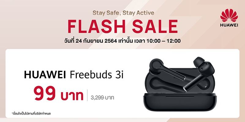 ปักหมุดแจ้งเตือนกันให้ไว! ย้ำว่าต้องเร็ว เพราะโอกาสแบบนี้ไม่ได้เวียนมาบรรจบกันบ่อยๆ กับการลดราคา Flash Sale ครั้งสำคัญของหูฟัง HUAWEI FreeBuds 3i ที่มาในราคาพิเศษแค่ 99 บาทเท่านั้น (จากราคาปกติ 3,299 บาท) เมื่อสั่งซื้อสินค้าในวันที่ 24 กันยายน 2564 เวลา 10.00 – 12.00 น. เท่านั้น (สงวนสิทธิ์เฉพาะลูกค้าที่ลงชื่อเข้าใช้งาน E-Store และทำการสั่งซื้อสินค้าที่ร่วมรายการภายในช่วงเวลาที่กิจกรรมกำหนด)