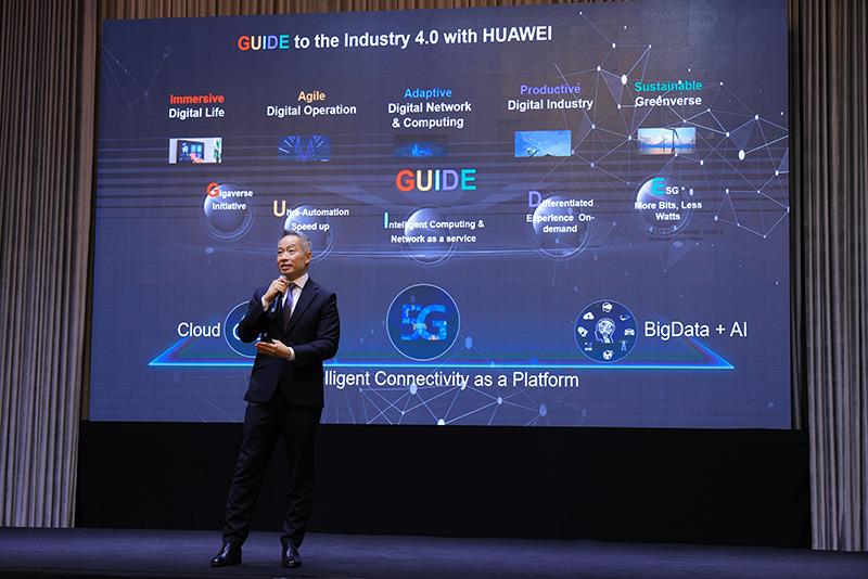 บริษัท หัวเว่ย เทคโนโลยี่ (ประเทศไทย) จำกัด เผยถึงเทรนด์อุตสาหกรรมอัจฉริยะในยุคแห่งการเชื่อมต่อ โดยชี้ให้เห็นถึงองค์ประกอบการเปลี่ยนแปลงสำคัญ 4 ด้านหลักที่จะเกิดขึ้นในภาคอุตสาหกรรม ได้แก่ รูปแบบการบริการ โครงสร้างพื้นฐาน ทักษะของบุคลากร และด้านระบบนิเวศของอุตสาหกรรม ซึ่งจะช่วยลดต้นทุน เพิ่มประสิทธิภาพของกระบวนการผลิต และเป็นมิตรกับสิ่งแวดล้อมมากขึ้น โดยหัวเว่ยจะเร่งสนับสนุนอุตสาหกรรมไทยบนเส้นทางการเปลี่ยนผ่านสู่ยุคดิจิทัลด้วยกลยุทธ์ GUIDE ซึ่งตั้งอยู่บนแพลตฟอร์มอัจฉริยะบนพื้นฐานของเทคโนโลยี 5G คลาวด์ บิ๊กดาต้า และ ปัญญาประดิษฐ์