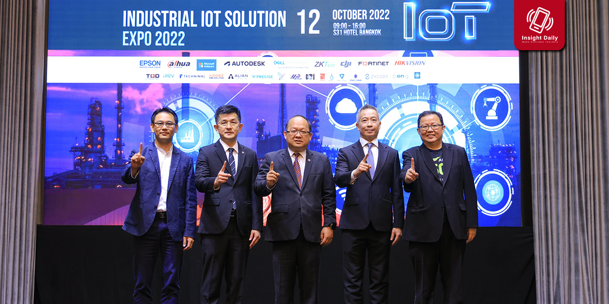 พิธีเปิดงาน Industrial IOT Solution EXPO 2022 นำโดย ดร.ชวพล จริยวิโรจน์ (ที่4จากซ้าย) กรรมการผู้จัดการ บริษัท หัวเว่ย เทคโนโลยี่ (ประเทศไทย) จำกัด และ นายเกรียงไกร เธียรนุกุล (ที่3จากซ้าย) ประธานสภาอุตสาหกรรมแห่งประเทศไทย
