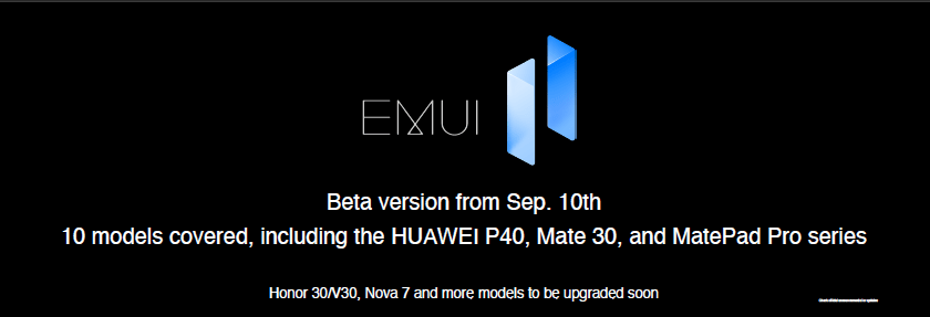 หัวเว่ยยังได้ประกาศถึง EMUI 11 (Beta) ที่จะปล่อยให้มีการอัปเดตกับมือถือ และแท็บเล็ตในหัวเว่ย กับชุดแรกที่จะได้รับการอัปเดต EMUI 11 (Beta) คือ