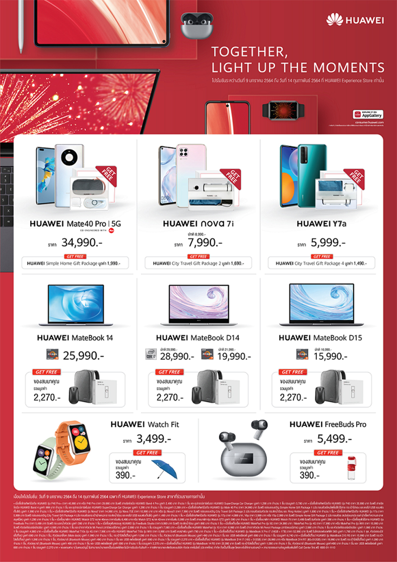 ใครอยากให้พรที่อธิษฐานเป็นจริง คงต้องลองมองหาแก็ดเจ็ตตัวช่วยที่จะทำให้คำขอสำฤทธิ์ผลเร็วขึ้น โดยตั้งแต่วันนี้จนถึงวันที่ 14 กุมภาพันธ์ 2564 หัวเว่ยจัดโปรต้อนรับตรุษจีนโดยเฉพาะ จะขอพรให้ร่ำรวย สุขภาพแข็งแรง หรือความสัมพันธ์แน่นแฟ้น ทั้ง HUAWEI Mate 40 Pro 5G, HUAWEI MatePad Pro 5G และ HUAWEI Watch Fit ก็พร้อมสานฝันให้เป็นจริง ด้วยโปรโมชันพร้อมของแถมสมนาคุณกันแบบยิ่งใหญ่ เมื่อซื้อสินค้าที่ร้าน HUAWEI Experience Store และร้านค้าที่ร่วมรายการ ตั้งแต่วันนี้ – 14 กุมภาพันธ์ 2564 เท่านั้น