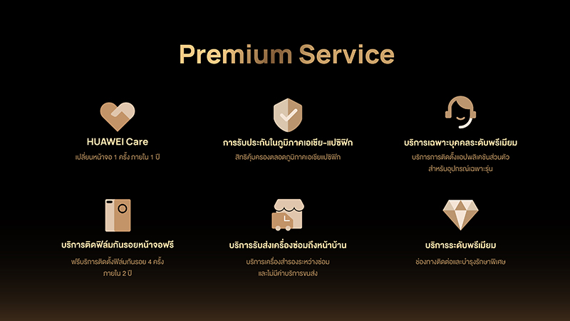 - HUAWEI Care บริการเปลี่ยนหน้าจอ 1 ครั้ง ภายใน 1 ปี