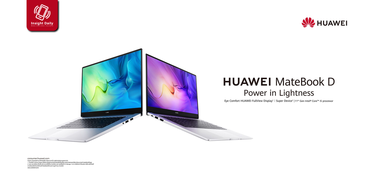 หัวเว่ย คอนซูมเมอร์ บิสสิเนส กรุ๊ป (ประเทศไทย) เปิดตัวแล็ปท็อปฟูลอัปเกรดล่าสุดจากตระกูล HUAWEI MateBook D Series ไลน์ผลิตภัณฑ์สำหรับคนเจเนอเรชันใหม่ในราคาสบายกระเป๋า ได้แก่ HUAWEI MateBook D 15 New แล็ปท็อปรุ่นคุ้มจอใหญ่สบายตาพกพาสะดวก และ HUAWEI MateBook D 14 New แล็ปท็อปบางเบาสุดคล่องตัว ทั้งสองรุ่นอัปเกรดขุมพลังใหม่ด้วยหน่วยประมวลผล 11th Gen Intel® แรงเร็วยิ่งกว่าเดิมเพื่อการทำงานที่ฉับไวของคนรุ่นใหม่ พร้อมรองรับฟีเจอร์ใหม่ HUAWEI Super Device ที่เข้ามายกระดับแล็ปท็อปสู่ศูนย์กลางการเชื่อมต่อแบบสมาร์ทออฟฟิศ มอบประสบการณ์การทำงานที่อัจฉริยะอย่างรอบด้าน