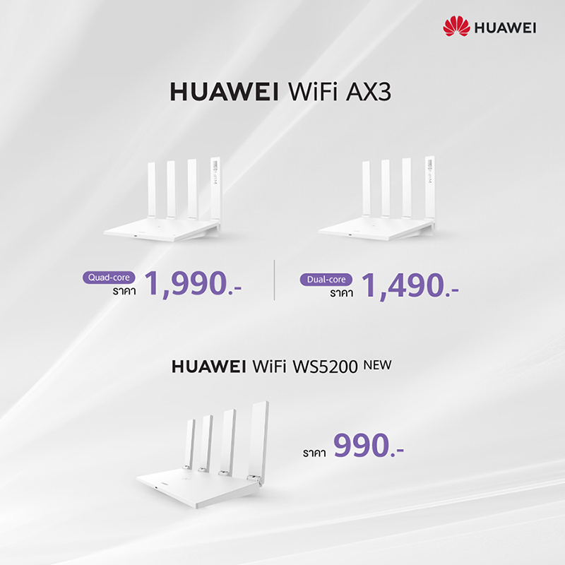 | HUAWEI Wi-Fi AX3 | White | Quad-core | 1,990 บาท | – | 28 เมษายน 2564 |