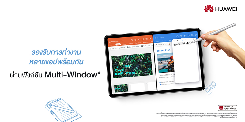 นอกจากนี้ HUAWEI MatePad 11 ยังมีฟีเจอร์ Multi-Window ที่สามารถเปิดหน้าต่างทำงานได้สูงสุดถึง 4 แอปฯ 4 หน้าจอพร้อมกัน แถมเก็บหน้าต่างลอยในแท็บเมนูด้านข้างได้มากถึง 10 หน้าต่าง ขณะที่ App-Multiplier เข้ามายกระดับการทำงานให้สมูธยิ่งกว่าเดิมด้วยฟีเจอร์สุดคูลที่สามารถเปิด 1 แอปพลิเคชันแบบ 2 หน้าต่าง ไม่ว่าจะเป็น เขียนอีเมลไปพร้อมๆ กับแชทในอีกหนึ่งหน้าต่าง พรีเซนงานพร้อมกับโชว์สคริปต์เพื่ออ่าน หรือเช็คราคาสินค้าระหว่างสองร้านในแอปฯ ช้อปปิ้งออนไลน์ได้อย่างง่ายดาย เป็นต้น