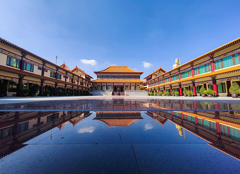 เวลาไปเยี่ยมสถานที่ที่มีความยิ่งใหญ่อลังการอย่างภาพนี้ สายตาของเราจะเห็นได้ทั้งความโอ่อ่าและรายละเอียดที่ประณีต ปกติแล้วการเก็บภาพด้วยเลนส์กว้าง ภาพมักจะบิดเบี้ยวจากความจริงหรือแตกเมื่อซูมดูรายละเอียด แต่กล้องสมาร์ทโฟนในปัจจุบันนั้นทำให้เซ็นเซอร์สามารถประมวลผลสิ่งที่ชัตเตอร์เก็บได้และใช้ AI ทำให้กล้องรับรู้รายละเอียดจากระยะไกล นอกจากเก็บภาพวัดได้ทั้งหมด ยังซูมได้เห็นยันป้ายชัดแจ๋วเลยทีเดียว อย่างภาพนี้ก็ใช้เทคโนโลยี HUAWEI XD Optics บน HUAWEI P50 Pro ช่วยเก็บตกรายละเอียดของแสง และถ่ายทอดภาพสะท้อนกับเงาของพื้นออกมาได้สวยสมจริงสุดๆ