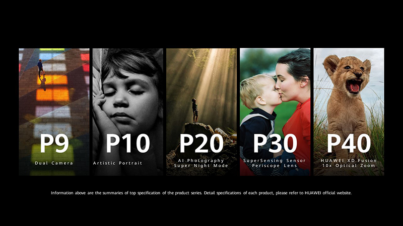 ตั้งแต่ HUAWEI P Series ได้ถือกำเนิดขึ้น หัวเว่ยก็ได้ก้าวเป็นผู้นำในด้านการออกแบบและเทคโนโลยีกล้อง ตั้งแต่ HUAWEI P9 ที่มี 2 กล้องในเครื่องเดียว วิวัฒนาการมาเป็น HUAWEI P10 Series ที่เป็นที่เลื่องลือในเรื่องกล้องถ่ายภาพ Portrait เมื่อก้าวสู่ HUAWEI P20 Series หัวเว่ยได้บุกเบิกการใช้ AI ในการถ่ายภาพ และการถ่ายภาพในที่แสงน้อยได้อย่างคมชัด ต่อมาจึงก้าวกระโดดสู่ความสามารถในการซูมระดับเพริสโคปที่เป็นที่ฮือฮาของ HUAWEI P30 Series และล่าสุดในปี 2020 หัวเว่ยได้เปิดตัว HUAWEI P40 Series เข้าสู่ยุคแห่งการถ่ายภาพที่ชาญฉลาดขึ้นไปอีกขั้นด้วย HUAWEI XD Fusion และ 10x Optical Zoom กับความสามารถในการซูมเพิ่มขึ้นมากกว่าเดิม ครั้งนี้หัวเว่ยพร้อมปฏิวัติวงการสมาร์ทโฟนอีกครั้งด้วย HUAWEI P50 Series