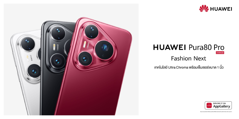 หัวเว่ย คอนซูมเมอร์ บิสสิเนส กรุ๊ป (ประเทศไทย) ตอกย้ำความเป็นผู้นำสมาร์ทโฟนรุ่นเรือธง ด้วยการมาถึงของ HUAWEI Pura 80 Series ที่ผสานนวัตกรรมกล้องอันเหนือชั้นเข้ากับฟีเจอร์ก้าวล้ำ โดยรุ่นที่น่าจับตามองอย่าง HUAWEI Pura 80 Pro โดดเด่นเหนือสมาร์ทโฟนในระดับเดียวกัน เพราะเป็นตัวแรกของวงการที่มาพร้อมกล้องเซ็นเซอร์ขนาดใหญ่ถึง 1 นิ้ว ซูมได้คมชัดสูงสุด 100 เท่า พร้อมระบบประมวลผลภาพอัจฉริยะ XMAGE ให้ภาพถ่ายสวยมีมิติในทุกสถานการณ์ และกล้อง Telephoto Macro ระดับชั้นนำ ให้ระยะโฟกัสใกล้สูงสุด 5 เซนติเมตร พร้อม AI อัจฉริยะที่สามารถเรียนรู้และเป็นผู้ช่วยในการใช้งานได้อย่างมีประสิทธิภาพ ดีไซน์โดดเด่นเป็นเอกลักษณ์ รวมทั้งรองรับการเข้าถึงแอปยอดนิยมผ่าน AppGallery วางจำหน่ายแล้วในราคาเริ่มต้นที่ 38,990 บาท พร้อมโปรโมชั่นและสิทธิพิเศษมากมาย
