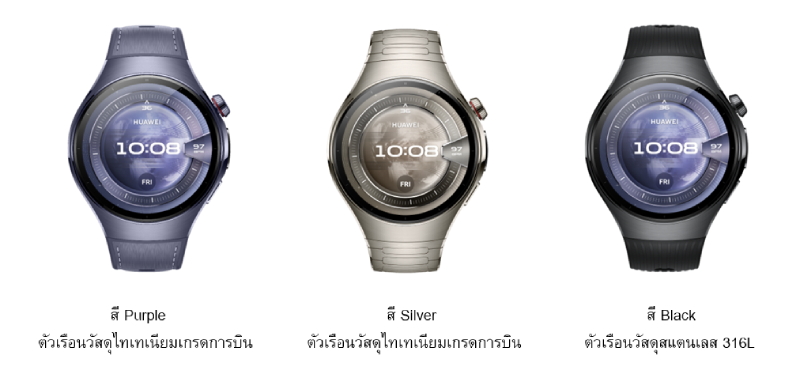 ตัวเรือนวัสดุไทเทเนียมเกรดการบิน สี Silver ราคา 18,990 บาท และสี Purple ราคา 15,990 บาท - HUAWEI WATCH 5 รุ่น 46 มม.