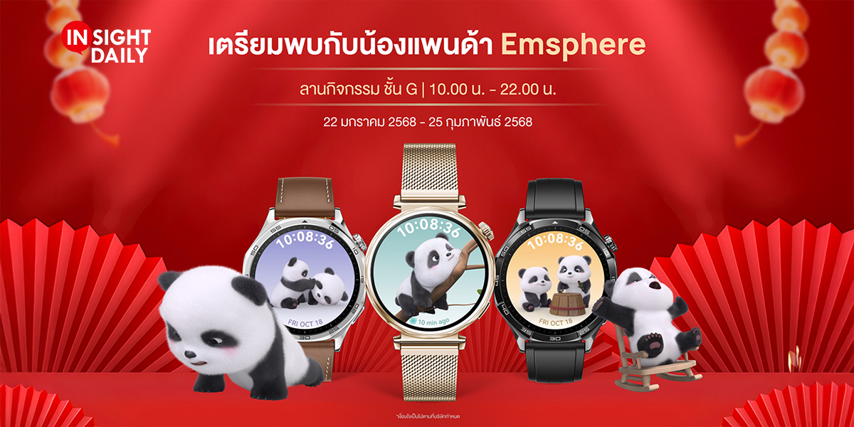 บริษัท หัวเว่ย คอนซูมเมอร์ บิสสิเนส กรุ๊ป (ประเทศไทย) จัดงานใหญ่แห่งปี HUAWEI WATCH GT5 Series ยกระดับการใส่ใจในสุขภาพ ณ ห้างสรรพสินค้า EMSPHERE บริเวณ EM MARKET ชั้น G ตั้งแต่วันที่ 22 มกราคม – 25 กุมภาพันธ์ 2568 นำเสนอความล้ำสมัยของเทคโนโลยีสมาร์ทวอทช์กับฟีเจอร์ Emotional Wellbeing Assistant ด้วยหน้าจอสมาร์ทวอทช์แบบอินเตอร์แอคทีฟที่เปลี่ยนการแสดงอารมณ์ของคุณให้กลายเป็นอนิเมชันแพนด้าน่ารักหลากหลายอารมณ์