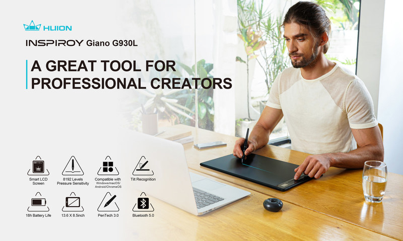 ฮูยอน (Huion) แบรนด์อุปกรณ์วาดภาพดิจิทัลชั้นนำระดับโลก เปิดตัวแผ่นรองวาดพร้อมเมาส์ปากกาบลูทูธรุ่นอินสไปรอย เจียโน จี930แอล (Inspiroy Giano G930L)