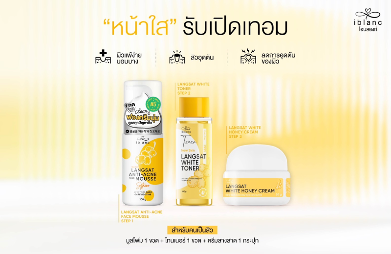 ไอเทมที่แนะนำคนเป็นสิวผิวแพ้ง่าย ครบจบในเช็ตเดียว ประกอบด้วย ไอบลองก์ ลางสาด เฟซ แอนตี้-แอคเน่ มูส, ไอบลองก์ ลางสาด ไวท์โทนเนอร์ และ ไอบลองก์ ลางสาด ไวท์ ฮันนี่ ครีม สามารถสั่งซื้อได้ผ่านช่องทางร้านค้าออนไลน์ ได้แก่ Facebook Page: iblanc thailand เพจหลักบริษัท, Instagram: iblancthailand, Tiktok: @iblanc_official, Shopee: iblanc thailand official, Line: @iblancthailand ติดต่อสอบถามข้อมูลเกี่ยวกับผลิตภัณฑ์เพิ่มเติมได้ที่ www.facebook.com/iblancthailand หรือ Line : @iblancthailand (https://lin.ee/JdI3SVC)