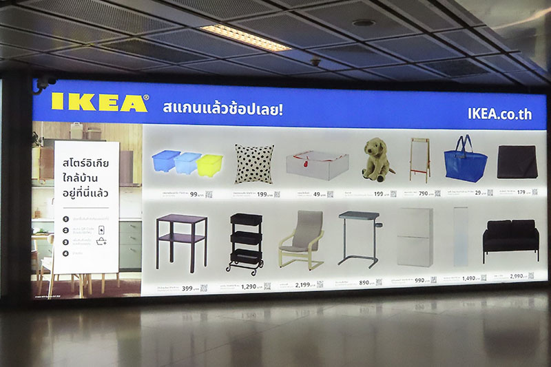 ตอบรับเทรนด์การช้อปออนไลน์และไลฟ์สไตล์แบบ on-the-go อิเกียส่งแคมเปญ “Scan and Shop” ยกสโตร์มาไว้ใกล้บ้านยิ่งขึ้น ตอกย้ำความเป็น อิเกีย ที่เข้าถึงง่ายสำหรับทุกคน ด้วยการช้อปผ่านป้ายบิลบอร์ดแสดงสินค้าสุดฮิตของ อิเกีย บนสถานีรถไฟฟ้า MRT และ BTS ทั่วกรุงเทพฯ เพิ่มความสะดวกสบายในการช้อปได้ง่ายยิ่งขึ้นไม่ว่าจะอยู่ในพื้นที่ใด ในเวลาใด