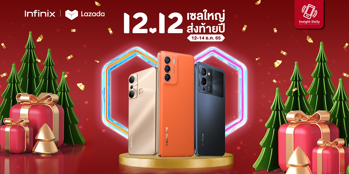 อินฟินิกซ์ (Infinix) แบรนด์สมาร์ตโฟนระดับโลก ร่วมสร้างสีสันเติมเต็มบรรยากาศแห่งการเฉลิมฉลองส่งท้ายปี เอาใจนักช้อปออนไลน์ด้วยโปรโมชันปังๆ ในมหกรรมช้อปปิ้งสุดยิ่งใหญ่ 12.12 เซลใหญ่ ส่งท้ายปี ที่ให้ทุกคนเป็นเจ้าของสมาร์ตโฟนคุณภาพจาก Infinix พร้อมรับส่วนลดในช่วง Flash Sale สูงสุด 1,309 บาท ส่งฟรี ผ่อน 0% นานสูงสุด 3 เดือน เมื่อซื้อสมาร์ตโฟนที่ร่วมรายการจาก Infinix LazMall บน LAZADA ระหว่างวันที่ 12 – 14 ธันวาคม 2565 พบกับสินค้าไฮไลท์ราคา Flash Sale อาทิ