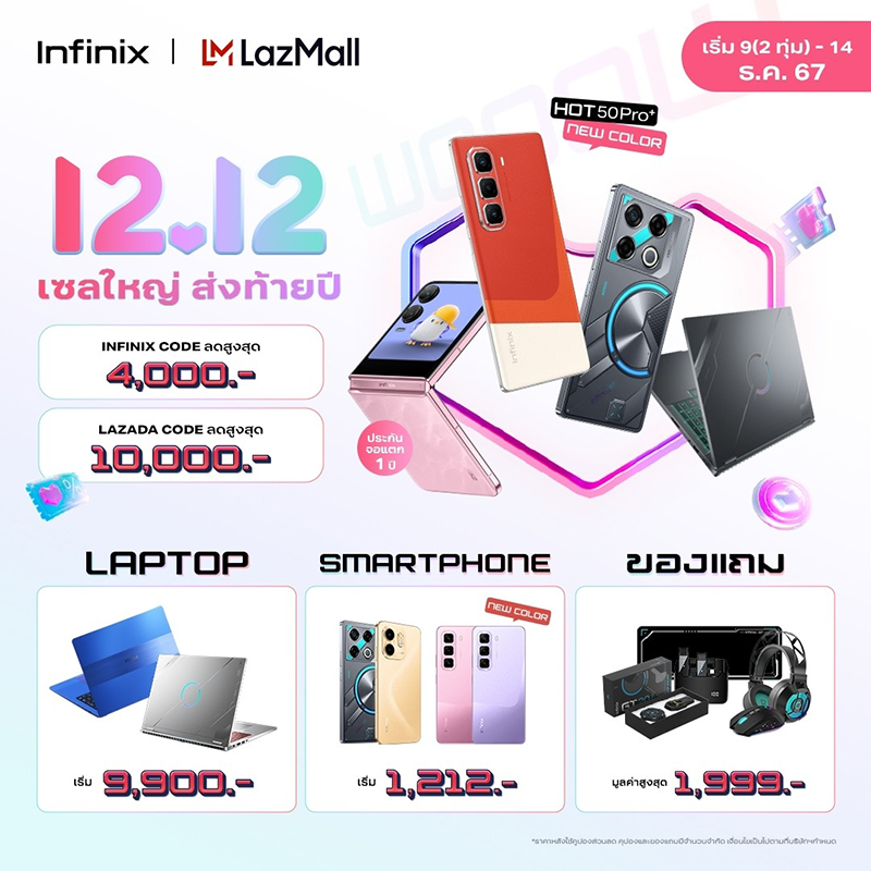 พิเศษกับโปรโมชั่นส่งท้ายปีสุดยิ่งใหญ่สำหรับสมาร์ทโฟน Infinix HOT 50 Pro+ มีให้เลือก 3 สีสันได้แก่ Aurora Green (เขียว), Rising Red (แดง) และBlossom Pink (ชมพู) เปิดตัวพร้อมโปรโมชั่นสุดคุ้ม 5,599 บาท จากราคาเต็ม 6,499 บาท และ Infinix HOT 50i มาในสีสันใหม่ Dreamy Purple (ม่วง) กับราคาเปิดตัวเริ่มต้นเพียง 2,999 บาท จากราคาเต็ม 3,699 บาท วางจำหน่ายพร้อมกันในวันที่ 12 ธันวาคม 2567 ที่ตัวแทนจำหน่ายทั่วประเทศ BaNANA, Jaymart, IT City, TG FONE และช่องทางออนไลน์ Shopee, Lazada และ TikTok ติดตามรายละเอียดและโปรโมชั่นอื่น ๆ เพิ่มเติมได้ที่ www.facebook.com/InfinixMobileThailand