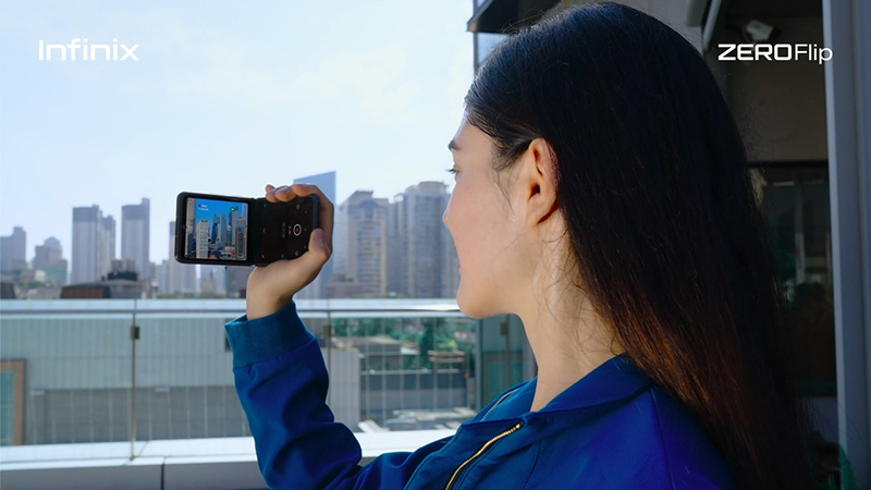 และเพื่อให้ผู้ใช้งานเพลิดเพลินไปกับการถ่ายวิดีโอ Infinix ZERO Flip มาพร้อมกับโหมดแฮนด์ฟรี ที่สามารถปรับมุมได้ตั้งแต่ 30 ถึง 150 องศา รวมถึงเลือกระยะถ่ายภาพที่เหมาะสมได้อย่างอิสระ ด้วยโหมด PDAF (Phase Detection AutoFocus) ของกล้องหน้าที่ช่วยให้มั่นใจได้ว่าภาพถ่ายจะมีความคมชัดและสมบูรณ์แบบทุกภาพ พร้อมเลนส์ Ultra-Wide มุมกว้าง 50MP ที่ช่วยจับภาพให้กว้างขึ้น
