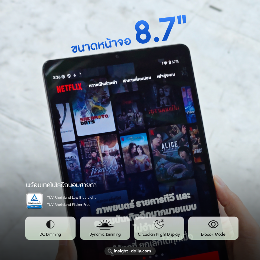 ✅ หน้าจอถนอมสายตา ขนาด 8.7 นิ้ว
