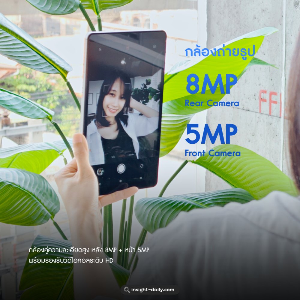 - กล้องคู่ หลัง 8MP + หน้า 5MP