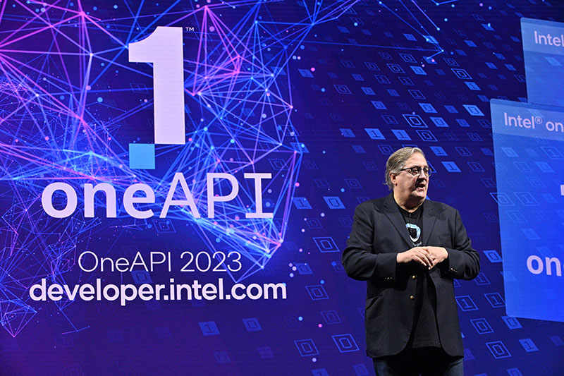 อีกหนึ่งหัวข้อสำคัญของงาน Intel Innovation ที่จัดขึ้นเป็นวันที่สองเพื่อชุมชนนักพัฒนานั้น นายลาเวนเดอร์ ได้กล่าวเน้นย้ำถึงความมุ่งมั่นของอินเทลในเรื่องระบบนิเวศที่เปิดกว้าง การเสนอทางเลือกที่หลากหลายสำหรับโซลูชันยุคใหม่ และการอยู่บนพื้นฐานของความไว้วางใจ โดยเริ่มต้นจากชุดเครื่องมือ oneAPI ซึ่งเป็นโมเดลการเขียนโปรแกรมที่อิงมาตรฐานที่เปิดกว้างและครอบคลุมหลากหลายอุตสาหกรรม ซึ่งจะช่วยให้นักพัฒนาสามารถเลือกสถาปัตยกรรมที่ดีที่สุดสำหรับปัญหาที่พวกเขาพยายามหาทางแก้ไขอยู่ จากความคืบหน้าในการต่อยอดการใช้งาน oneAPI อินเทลยังได้กำหนดทิศทางการใช้งาน oneAPI ในอนาคตเพื่อตอบสนองความต้องการที่กำลังเปลี่ยนแปลงไปของนักพัฒนา ผู้จำหน่ายซอฟต์แวร์ ห้องปฏิบัติการระดับประเทศ นักวิจัย และผู้จำหน่ายซิลิคอนได้อย่างตรงจุด