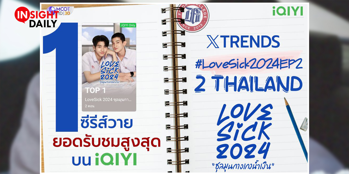 “LoveSick 2024 ชุลมุนกางเกงน้ำเงิน” ซีรีส์วายมาแรงยอดรับชมสูงสุดอันดับ 1 บน iQIYI พร้อมขึ้นเทรนด์ X อันดับ 2 ประเทศไทย