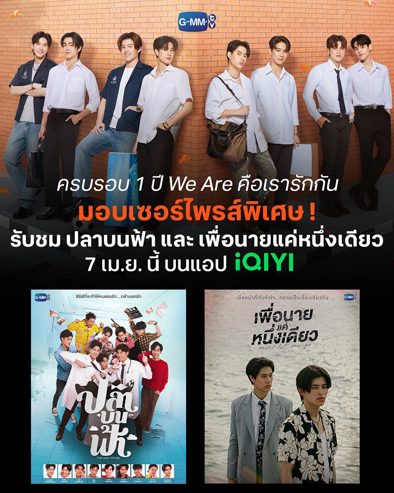 เริ่มด้วยฝั่งซีรีส์ BL ที่ฉลองครบรอบ 1 ปีของซีรีส์ที่ทุกด้อมรอคอย “We Are คือเรารักกัน” ที่งานนี้ขอเพิ่มความฟินต่อเนื่องด้วยสองผลงานชวนใจละลายของ ‘ปอนด์ ณราวิชญ์’ และ ‘ภูวินทร์ ตั้งศักดิ์ยืน’ กับซีรีส์แนวโรแมนติก-คอเมดี้ “ปลาบนฟ้า (Fish Upon the Sky)” ว่าด้วยภารกิจเปลี่ยนหนุ่มเนิร์ดให้กลายเป็นตัวจี๊ดเพื่อพิชิตใจคนที่แอบชอบ และซีรีส์แนวโรแมนติก-ดราม่า “เพื่อนายแค่หนึ่งเดียว (Never Let Me Go)” ที่ทั้งคู่ต้องเผชิญกับภารกิจหัวใจท่ามกลางอันตรายและความรักที่เดิมพันด้วยชีวิต