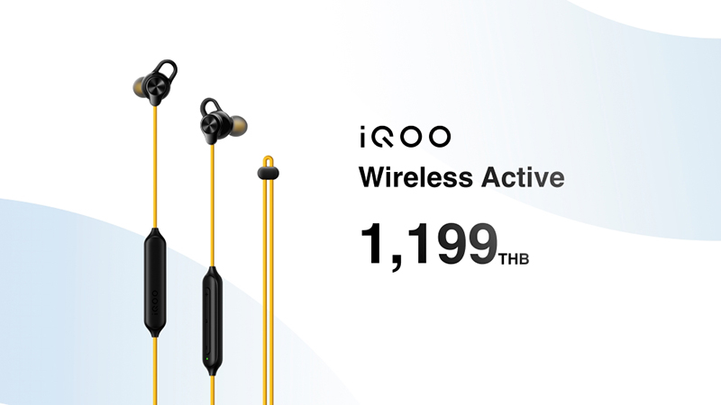 นอกจากนี้ ยังมีการเปิดตัวหูฟัง iQOO Wireless Active มอบที่สุดแห่งประสบการณ์เสียง กับเสียงเบสที่แน่นพร้อมดึงรายละเอียดเสียงออกมาได้อย่างเต็มพิกัด มาพร้อมกับไมโครโฟนความไวสูงที่พร้อมรองรับระบบตัดเสียงรบกวนอัตโนมัติ ช่วยให้สื่อสารกับเพื่อนร่วมทีมในขณะเล่นเกมได้อย่างมีประสิทธิภาพและเต็มขีดความสามารถ ด้วยแบตเตอรี่ที่ใช้งานได้นานถึง 12 ชั่วโมงต่อการชาร์จ 1 ครั้ง สามารถรับฟังเพลงได้มากถึง 180 เพลงหรือดูภาพยนตร์ได้ถึง 6 เรื่อง เมื่อชาร์จเพียงแค่ 10 นาที พร้อมดีไซน์อันพิถีพิถันช่วยให้ประสิทธิภาพการกันน้ำมาตรฐาน IPX5 ไม่ต้องห่วงเรื่องเหงื่อหรือฝนอีกต่อไป