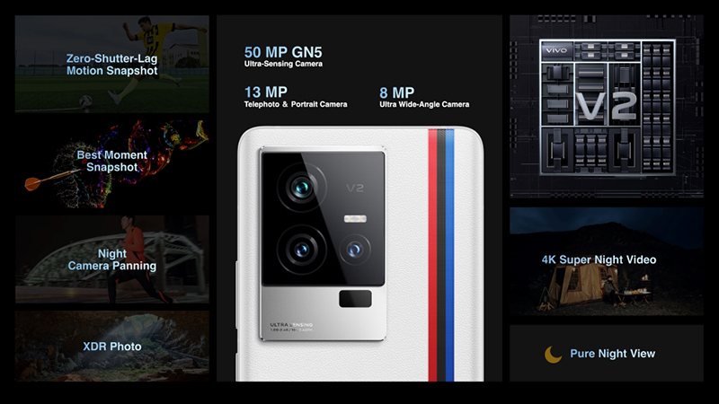 เรื่องการถ่ายภาพ iQOO 11 5G ก็ไม่ธรรมดาเช่นกัน มาพร้อมกล้องหลักความละเอียด 50MP ที่เก็บรายละเอียดได้คมชัดทุกมิติพร้อมเลนส์กล้อง Telephoto & Portrait ความละเอียด 16MP กล้อง Ultra-Wide 8MP สนุกกับการเซลฟีด้วยกล้องหน้า 16MP พร้อมโหมดถ่ายภาพมากมายให้เลือกอย่างจุใจ ไม่ว่าจะเป็นโหมด Zero-Shutter-Lag Motion, Snapshot, Night Camera Panning, Best Moment Snapshot, Pure Night View, OIS Auto Reset, Automatic Perspective, Correction, Studio-Quality, และ Superb Portrait รวมถึง 4K Super Night Video ที่จุดประกายห้วงโมเมนต์สำคัญยามค่ำคืนให้คมชัดระดับ 4K ด้วยอัลกอริธึมการถ่ายภาพกลางคืนโดยเฉพาะ มาพร้อมชิปเซ็ต vivo V2 เพิ่มสมรรถนะการประมวลผลภาพได้เร็วขึ้น ถ่ายภาพขณะซูมได้ดีขึ้น และประหยัดพลังงานมากขึ้นด้วย