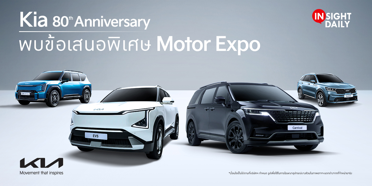 เกีย เซลส์ (ประเทศไทย) ฉลองครบรอบ 80 ปีก่อตั้งแบรนด์เกีย มอบข้อเสนอ Motor Expo สุดคุ้มครอบคลุมรถยนต์ทั้ง 4 รุ่นหลัก ได้แก่ The Kia EV5, The Kia EV9, The Kia Carnival และ The Kia Sorento อาทิ ข้อเสนอราคาพิเศษสำหรับรถยนต์ The Kia Carnival ที่ 1,999,000 บาท มาพร้อมกับการรับประกันคุณภาพยาวนาน 5 ปี บริการช่วยเหลือฉุกเฉิน ระยะเวลา 5 ปี และสำหรับลูกค้า The Kia EV5 Air ผ่อนเริ่มต้นเพียง 15,526 บาทต่อเดือนเท่านั้น* โดย The Kia EV5 ทุกรุ่นมาพร้อมการรับประกันคุณภาพยาวนาน 7 ปี ฟรี บริการช่วยเหลือฉุกเฉิน ระยะเวลา 7 ปี พร้อมการรับประกันแบตเตอรี่รถยนต์ (High-Voltage Battery) 8 ปี เป็นต้น
