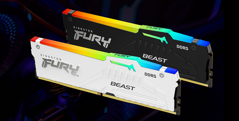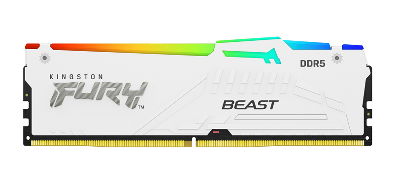 Kingston FURY Beast DDR5 มอบความเร็วที่เหนือชั้นและโซลูชันค่าหน่วงเวลาต่ำ เพื่อยกระดับประสบการณ์การใช้งานให้ก้าวข้ามไปอีกขั้น โดยล่าสุดมาพร้อมดีไซน์ชุดกระจายความร้อนแนวต่ำแบบใหม่สีขาว ที่ผสานทั้งประสิทธิภาพในการระบายความร้อนที่โดดเด่นและความโฉบเฉี่ยวไว้ด้วยกัน พร้อมให้ผู้ใช้งานสามารถอัพเกรดได้อย่างสะดวกและง่ายดายด้วยฟังก์ชั่น Plug N Play ที่ความเร็ว 4800MT/s1 หรือเลือกชุดโปรไฟล์ที่ได้รับรองมาตรฐานอย่าง Intel® XMP 3.0 หรือ AMD EXPO™ นอกจากนี้ ผู้ใช้งานยังสามารถปรับแต่งเอฟเฟกต์ไฟ RGB ของ Kingston FURY Beast DDR5 ให้เข้ากับเอกลักษณ์เฉพาะตัวได้ ผ่านทางซอฟต์แวร์ Kingston FURY CTRL™ ด้วยการเลือกหรือปรับแต่งหนึ่งใน 18 ไลบรารี่รูปแบบไฟ RGB ที่สดใสและสวยงาม ซึ่งเอฟเฟกต์ไฟทั้งหมดจะเล่นแสงสีที่ต่อเนื่องและประสานกันเป็นอย่างลงตัว ด้วยเทคโนโลยี Infrared Sync ที่จดสิทธิบัตรของ Kingston ทั้งนี้กลุ่มผลิตภัณฑ์ Kingston FURY Beast DDR5 มาพร้อมความเร็วสูงสุดถึง 6000MT/s และมีจำหน่ายที่ความจุ 8GB, 16GB และ 32GB แบบแถวเดียวและชุด 2 แถว สูงสุดที่ความจุ 64GB รวมทั้งแบบชุด 4 แถวในเดือนหน้า