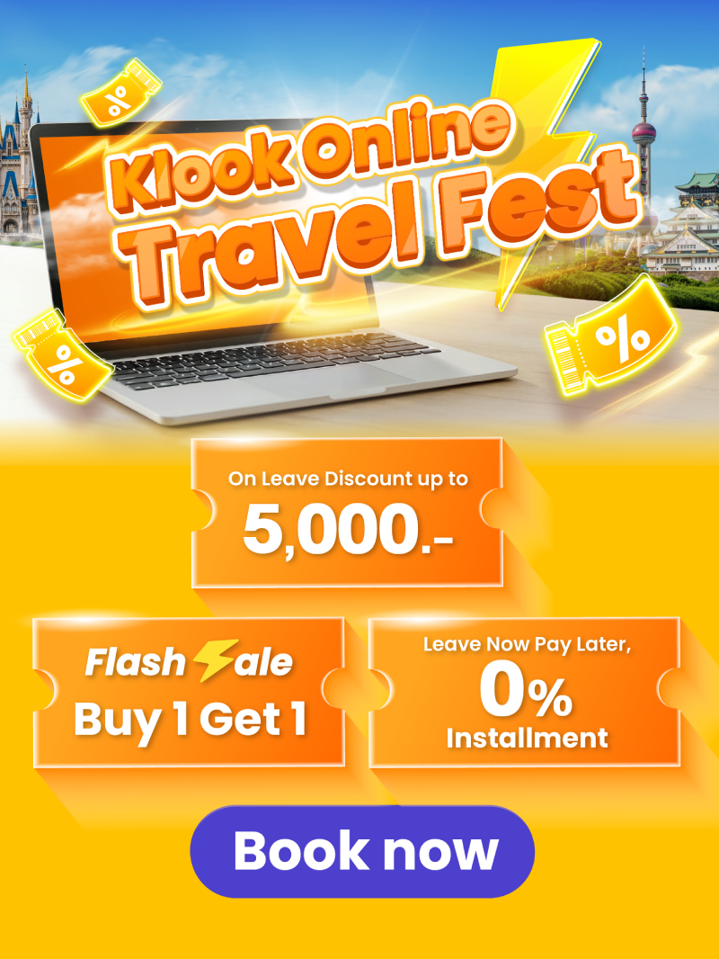 ค้นหากิจกรรมและส่วนลดในงาน Klook Online Travel Fest มหกรรมลาเที่ยวแห่งปี คลิก www.klook.com/th/tetris/promo/travelth