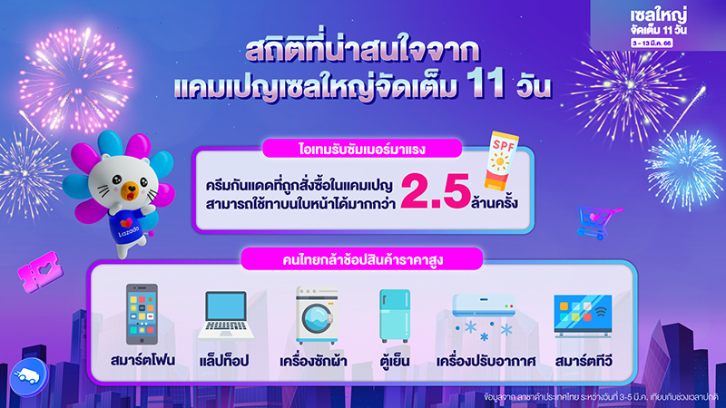 ลาซาด้ายังรวบรวมสถิตที่น่าสนใจจากแคมเปญ “เซลใหญ่จัดเต็ม 11 วัน” ดังนี้