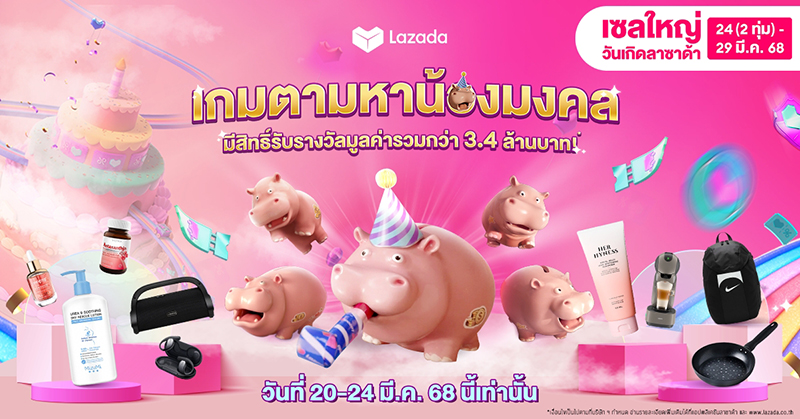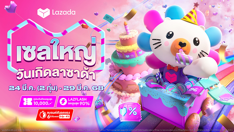 Lazada ฉลองครบรอบ 13 ปีอย่างยิ่งใหญ่กับแคมเปญ “เซลใหญ่ วันเกิดลาซาด้า” สะท้อนความมุ่งมั่นในการยกระดับวงการอีคอมเมิร์ซตลอดกว่าทศวรรษที่ผ่านมา เดินหน้าขับเคลื่อนเทคโนโลยีและลงทุนต่อเนื่องเพื่อมอบประสบการณ์ที่ดีสำหรับทั้งผู้ซื้อและผู้ขายอย่างไม่หยุดยั้ง พร้อมลุยกิจกรรมการตลาดเต็มสูบส่งท้ายไตรมาสแรก มุ่งสร้างการมีส่วนร่วมกับนักช้อปด้วยธีม “มูเก็ตติ้ง” ผสานความเชื่อของคนไทยเข้ากับการช้อปปิงออนไลน์ เปิดคาแรกเตอร์ “ฮิปโปมงคล” ที่พร้อมมอบความคุ้มค่าผ่านคูปองส่วนลด เกมและกิจกรรมแจกรางวัลรวมมูลค่ากว่า 3.4 ล้านบาท* เตรียมช้อปจัดหนักกับเซลใหญ่ วันเกิดลาซาด้า อัดแน่นดีลเด็ดสินค้าสุดคุ้มค่า ตั้งแต่ 24 มีนาคม 2 ทุ่ม จนถึงวันที่ 29 มีนาคม 2568